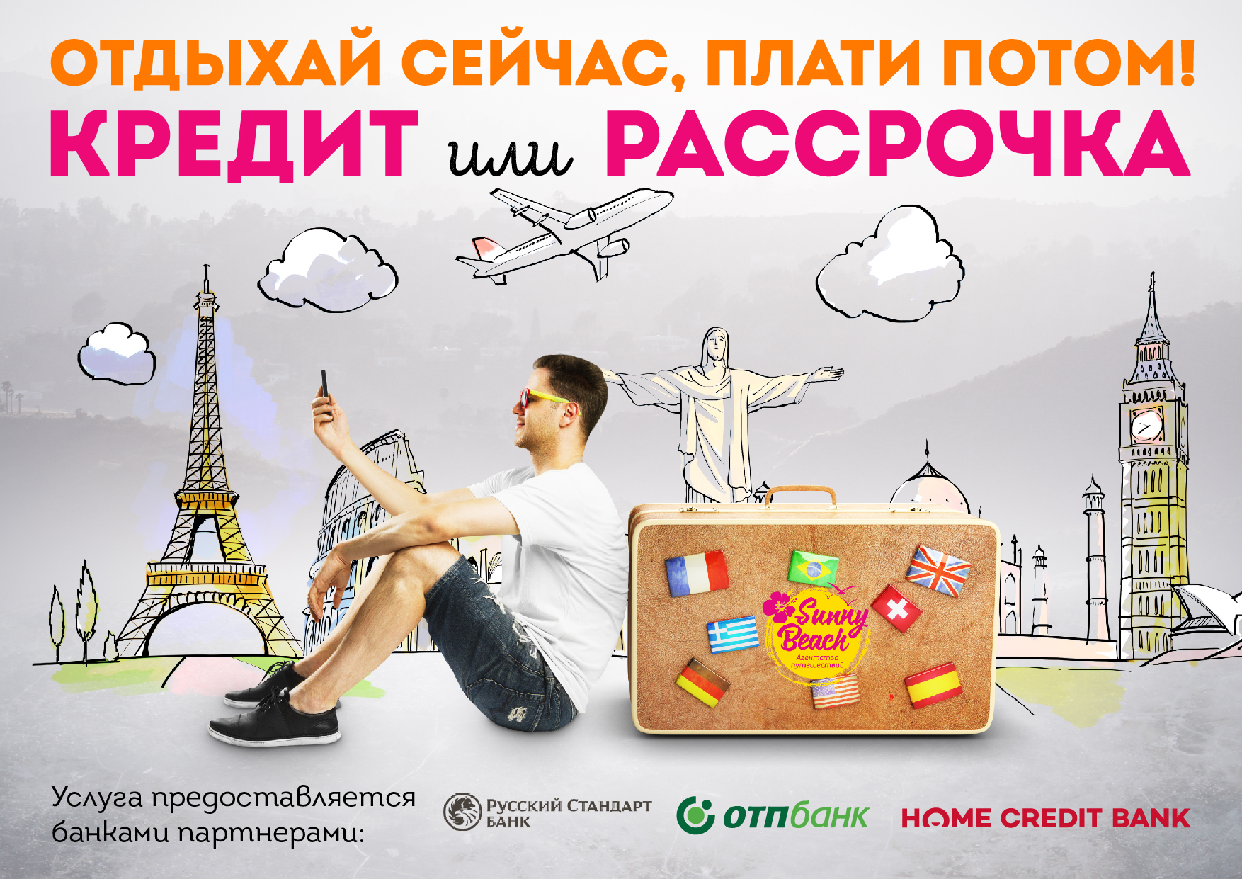 Мечтаете о теплом море, песчаных пляжах и ярком солнце? Или о приятной прохладе узких улиц европейских городов, ночных огнях крупных мегаполисов? Где бы Вы ни хотели оказаться, теперь есть возможность это сделать вместе с Агентством путешествий "Sunny Beach" и банками партнерами прямо сейчас.